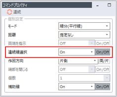 [コマンドプロパティ]の[連続線選択]が[On]になっていることを確認します。