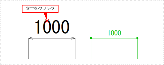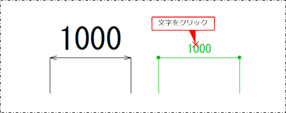 - 文字を含めた個別情報をすべてコピーしたい場合:寸法線の文字部分をクリックします。