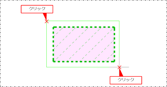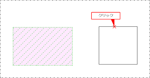 [塗りつぶし]コマンドの[コマンドプロパティ]>[個別設定]の[色設定][透過率(%)]の設定がコピーされます。 塗りつぶしのコピー元は図形の外形線を選択します。コピー先の塗りつぶし図形内をクリックすると[色設定][透過率(%)]の設定がコピーされます。 [塗りつぶし]コマンドで作成した図形同士でのみ属性をコピーできます。 |