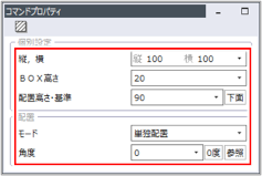 [コマンドプロパティ]で以下の設定をしている場合は、[縦,横]で指定した大きさのBOXを単独で作図します。