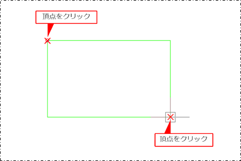 頂点をクリックしてから、対角の頂点をクリックします。