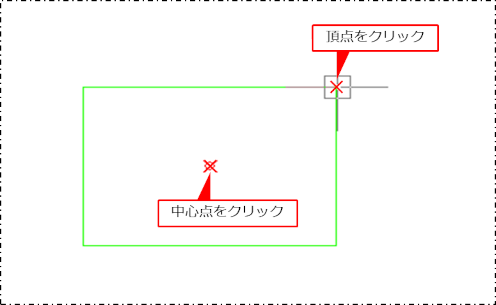 [コマンドプロパティ]で以下の設定をしている場合は、中心点と頂点の2点を指定してBOXを作図します。