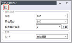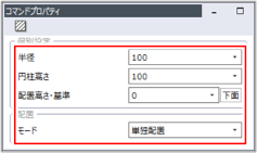 [コマンドプロパティ]で以下の設定をしている場合は、[半径]で指定した大きさの円柱を単独で作図します。