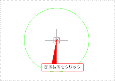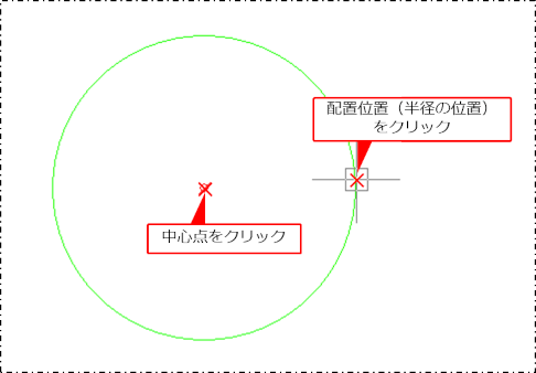 中心点をクリックしてから、配置位置(半径の位置)をクリックします。
