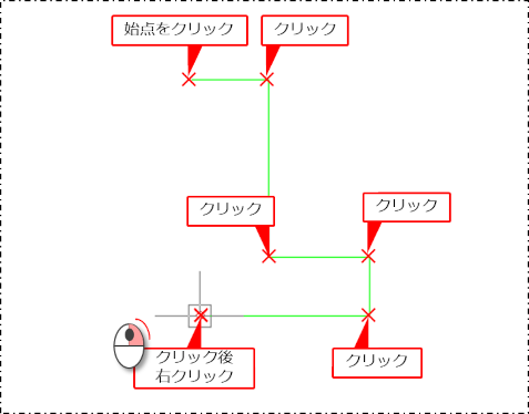 右クリックまたは[Enter]キーを押して確定すると、自動的に始点と接続します。