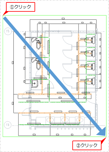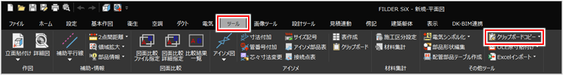 コピーする図面上で[ツール]タブの[クリップボードコピー]コマンド(
