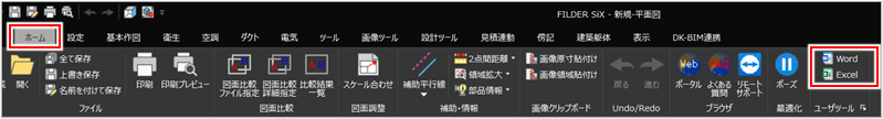 FILDER SiXの[ホーム]タブで[Excel]コマンド(