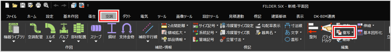 [基本作図]タブ>[複写] [衛生]タブ>[複写] [空調]タブ>[複写] [ダクト]タブ>[複写] [電気]タブ>[複写] [建築躯体]タブ>[複写] |