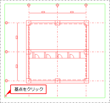 図形の一部を選択して複写する場合は、[On]を選択します。ただし、別のファイルには複写できません。また、手順8で目標点をクリックした際にも複写はされません。[On/Off]ボタンをクリックすると、[On]と[Off]が交互に切り替わります。 |
