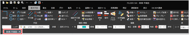 複写先図面ファイルのタブをクリックし、図面を切り替えます。
