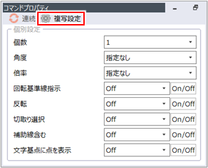 [コマンドプロパティ]の[複写設定]をクリックします。