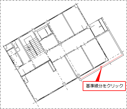 斜めに配置された躯体図に配管やダクトなどを作図する場合に、一時的に座標軸の角度を変更して躯体図を水平または垂直にし、作図しやすくできます。