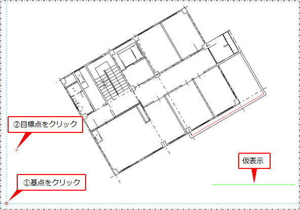 目標点の設定時は、手順3で指定した基準線分が、移動後のプレビューとして仮表示されます。