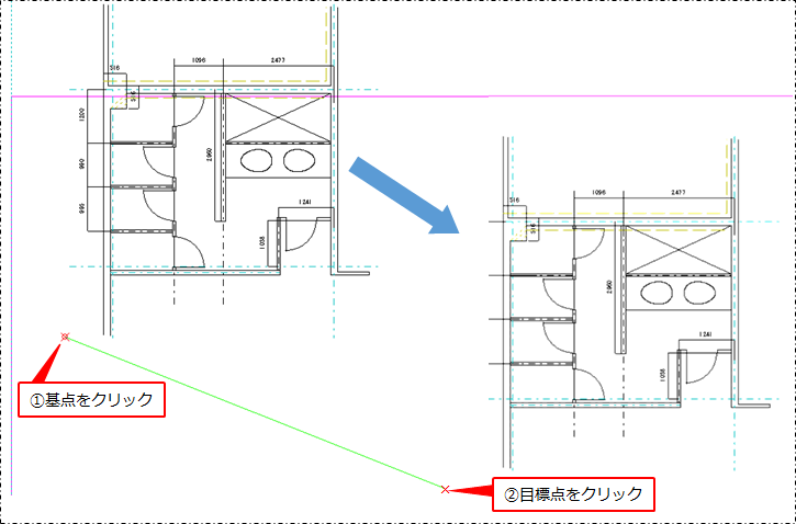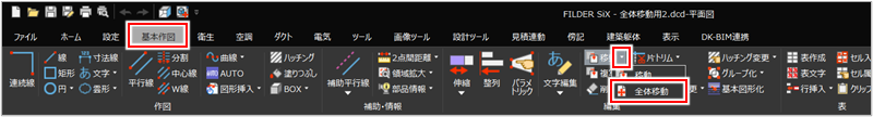 [基本作図]タブの[移動]プルダウンメニューから[全体移動]コマンド(