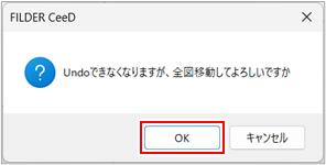 確認メッセージで[OK]ボタンをクリックすると、図面全体移動を取り消す(Undo)ことができません。