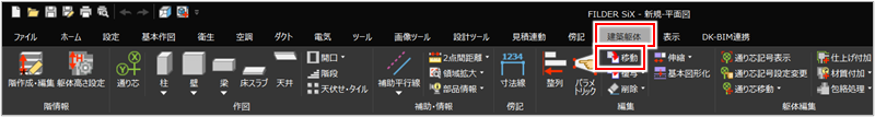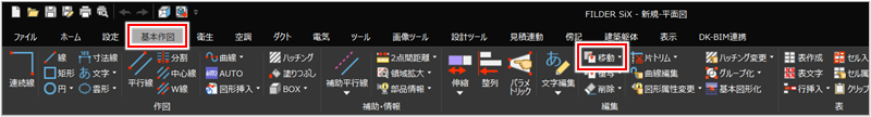 [基本作図]タブ>[移動] [衛生]タブ>[移動] [空調]タブ>[移動] [ダクト]タブ>[移動] [電気]タブ>[移動] [建築躯体]タブ>[移動] |