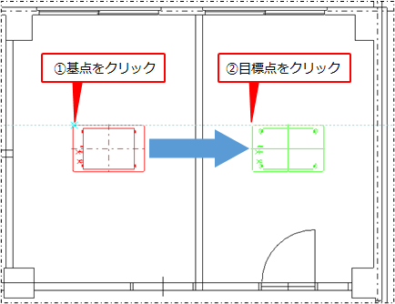 コマンドキャンセルの状態で移動する図形をクリックします。