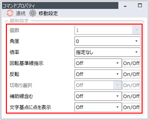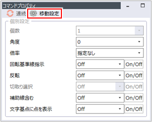 [コマンドプロパティ]の[移動設定]をクリックします。