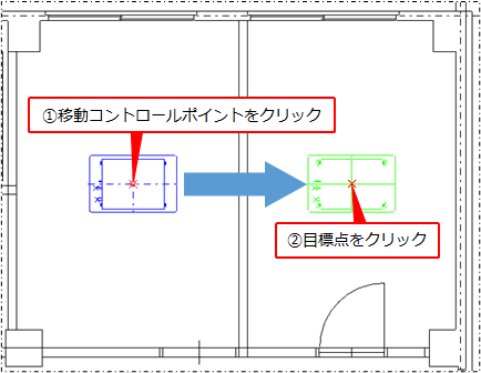 (移動コントロールポイント)をクリックし、移動先の目標点をクリックします。