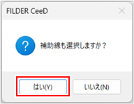 図形と一緒に補助線も移動できます。図形を選択後、補助線を選択して表示されるメッセージで[はい]ボタンをクリックします。