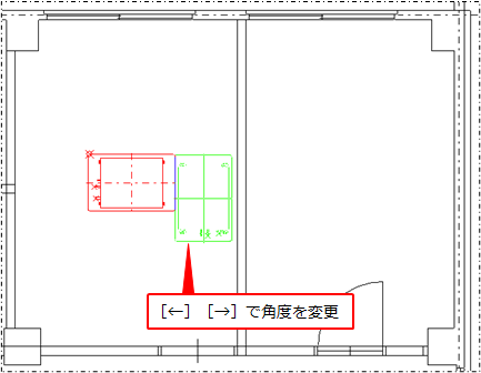 基点をクリック後、キーボードの[←]キーまたは[→]キーで図形の角度を変更して移動できます。
