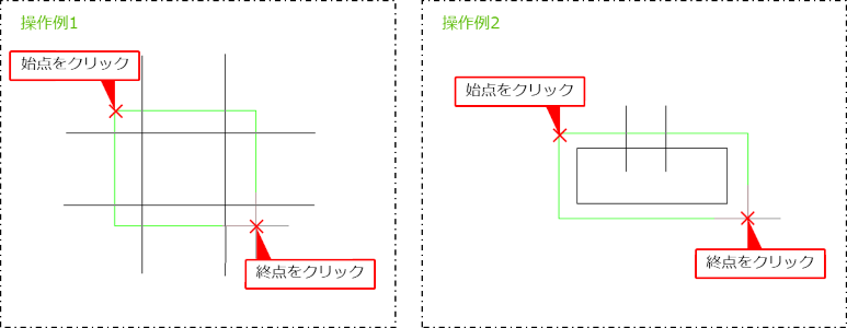 指定した範囲内の直線の端点または交点の2点間を部分的に削除できます。