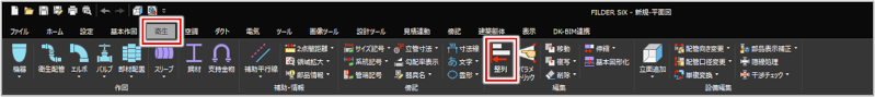 [基本作図]タブ>[整列] [衛生]タブ>[整列] [空調]タブ>[整列] [電気]タブ>[整列] [建築躯体]タブ>[整列] |