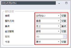 整列のしかたに応じて[コマンドプロパティ]で設定を変更します。
