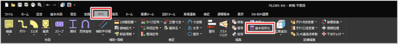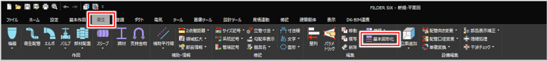 [基本作図]タブ>[基本図形化] [衛生]タブ>[基本図形化] [空調]タブ>[基本図形化] [ダクト]タブ>[基本図形化] [電気]タブ>[基本図形化] [建築躯体]タブ>[基本図形化] |