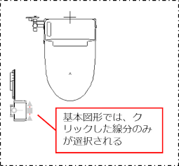 機器の場合は1箇所をクリックすると全体が選択されますが、基本図形化すると、個別の図形の集合体となるため、クリックした線分のみが選択されます。