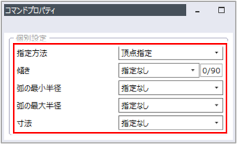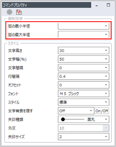 [コマンドプロパティ]で、[弧の最小半径][弧の最大半径]を入力します。