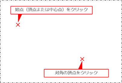 作図範囲の始点(頂点または中心点)をクリックしてから、対角の頂点をクリックします。