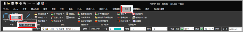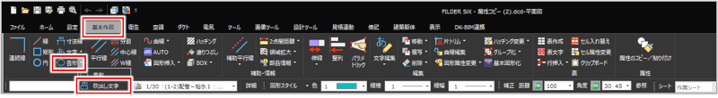 [基本作図]タブ>[雲形]プルダウンメニュー>[吹出し文字] [衛生]タブ>[雲形]プルダウンメニュー>[吹出し文字] [空調]タブ>[雲形]プルダウンメニュー>[吹出し文字] [ダクト]タブ>[雲形]プルダウンメニュー>[吹出し文字] [電気]タブ>[雲形]プルダウンメニュー>[吹出し文字] [傍記]タブ>[雲形]プルダウンメニュー>[吹出し文字] |