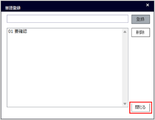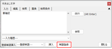 [単語登録]ダイアログが表示されます。 単語を入力し、[登録]ボタンをクリックします。