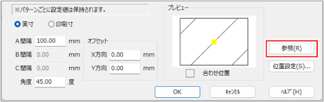 図面上の他の図形のハッチング設定を取り込むには、[参照]ボタンをクリックし、参照する図形を図面上でクリックしてください。