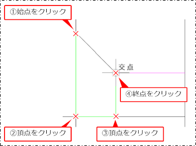 以下では、[指示を終り作図]が[On]の場合を例に説明します。