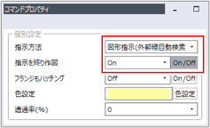 [コマンドプロパティ]で塗りつぶし方法を設定します。