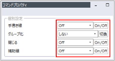 連続線を補助線として描く場合は、[On]を選択します。 [On/Off]ボタンをクリックすると、[On]と[Off]が交互に切り替わります。 |