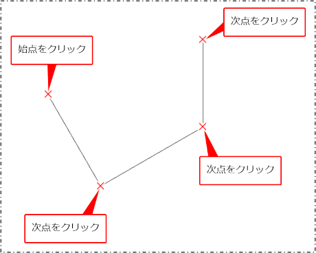 始点をクリックしてから次点を連続でクリックします。