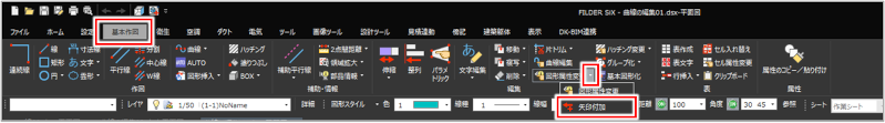 [基本作図]タブの[図形属性変更]プルダウンメニューから[矢印付加]コマンド(