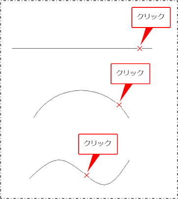 クリックした位置側の端部に矢印が付きます。