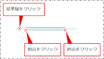 基準となる線分をクリックしてから始点と終点をクリックします。