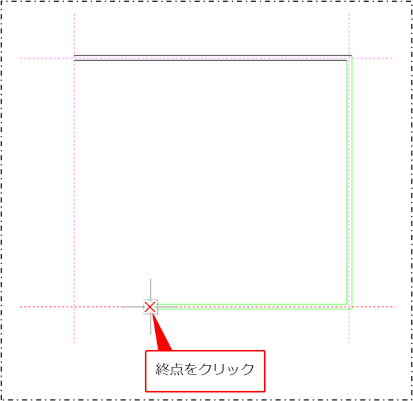 連続するW線の作図をいったん終了する場合は、終点の位置をクリックします。