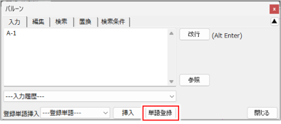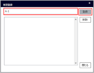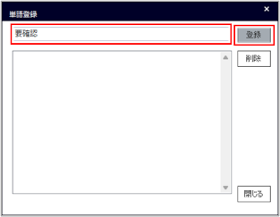 [単語登録]ダイアログが表示されます。 単語を入力し、[登録]ボタンをクリックします。