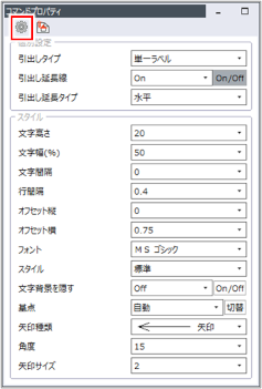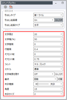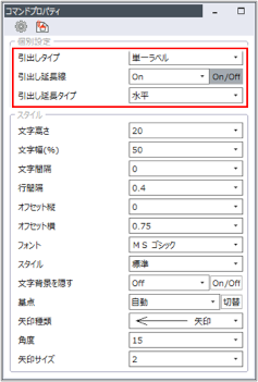 [コマンドプロパティ]で、引き出し線のスタイルを設定します。