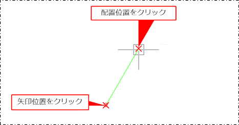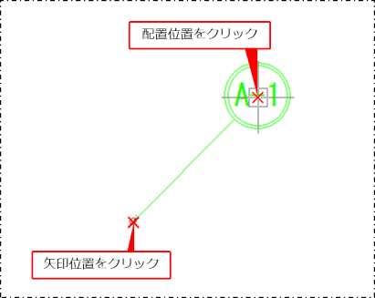 矢印位置をクリックしてから、文字の配置位置をクリックします。