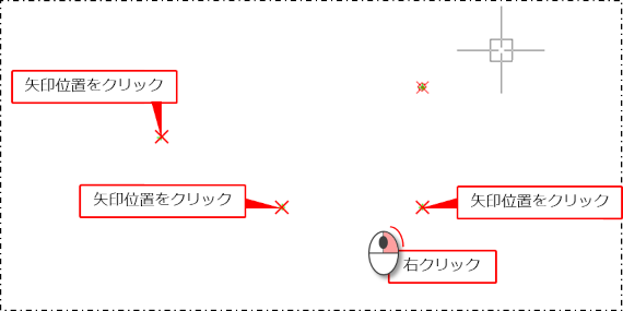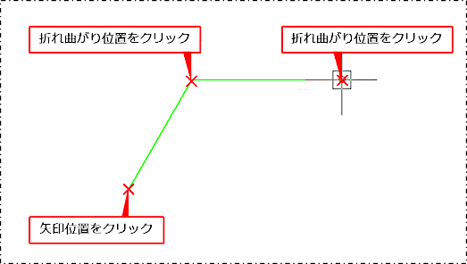 矢印位置をクリックしてから、引き出し線の折れ曲がり位置をクリックします。