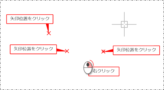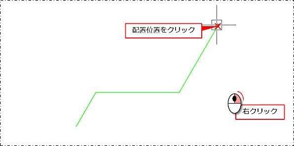 [コマンドプロパティ]で以下の設定をしている場合の作図方法を説明します。