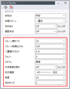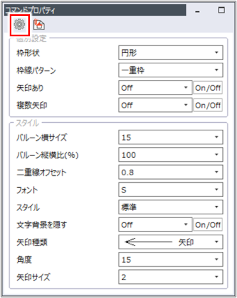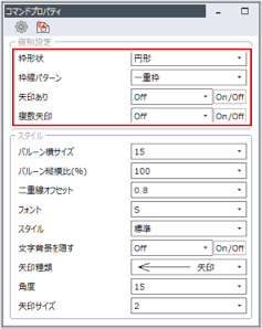 [コマンドプロパティ]で、バルーン枠のスタイルと矢印の有無を設定します。