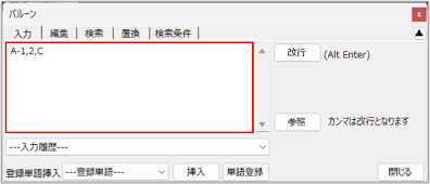 文字列を入力します。 文字列を「,」(半角カンマ)で区切って入力すると、バルーン内の文字を複数段(最大3段)で配置できます。